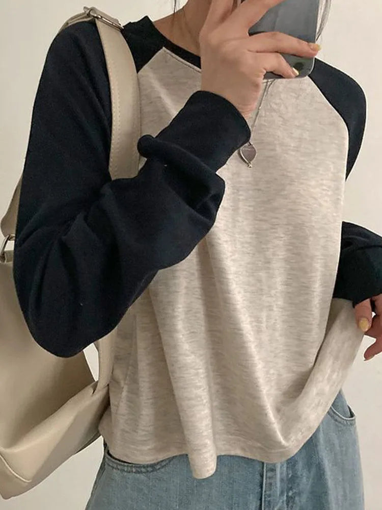 Korean Style Women Cotton Patchwork Long Sleeve Top