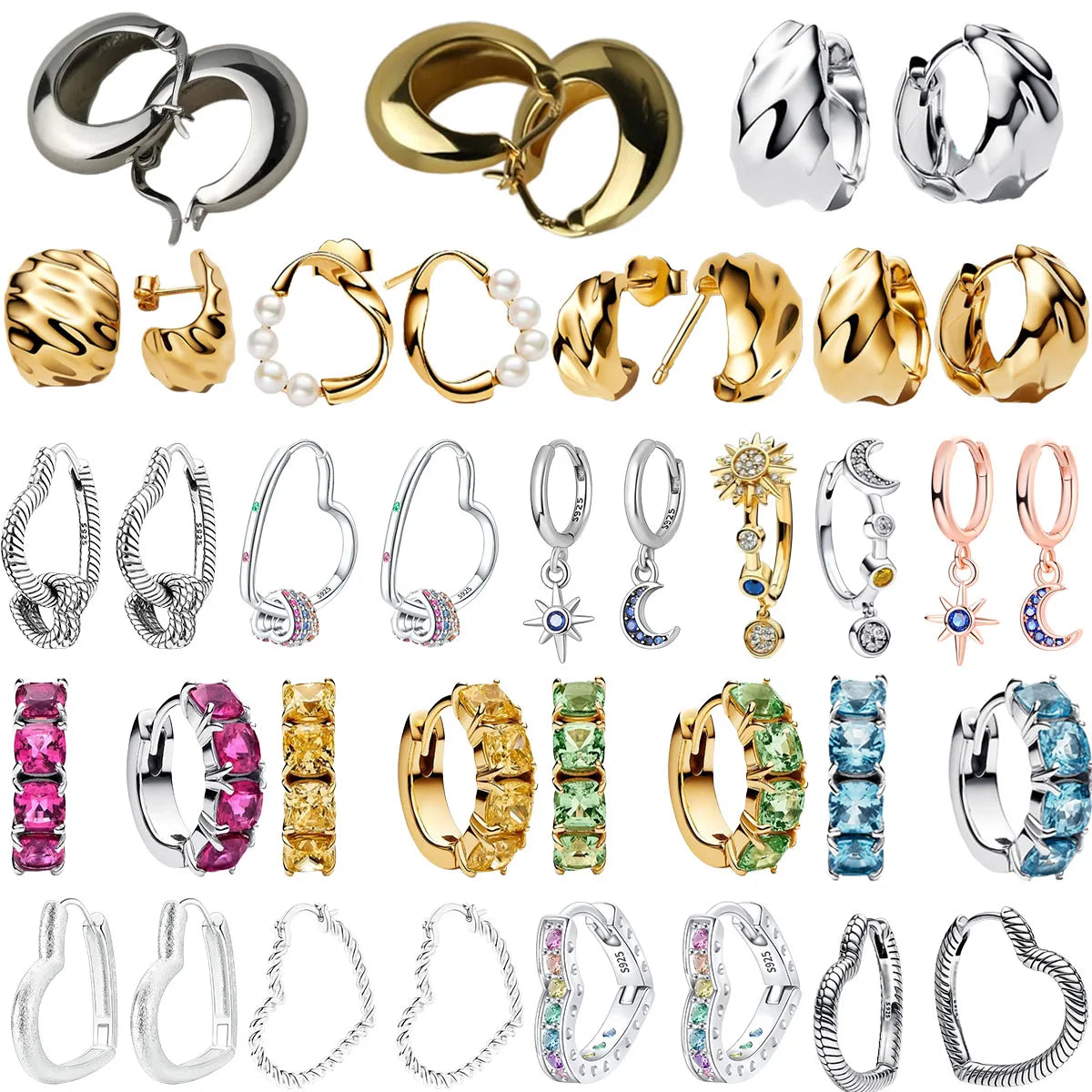 Luxury 925 Sterling Silver Chunky Hoop Earrings with Big Heart Zircon Accents for Women Wedding Party Jewelry Gifts