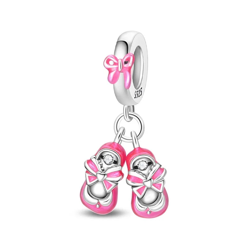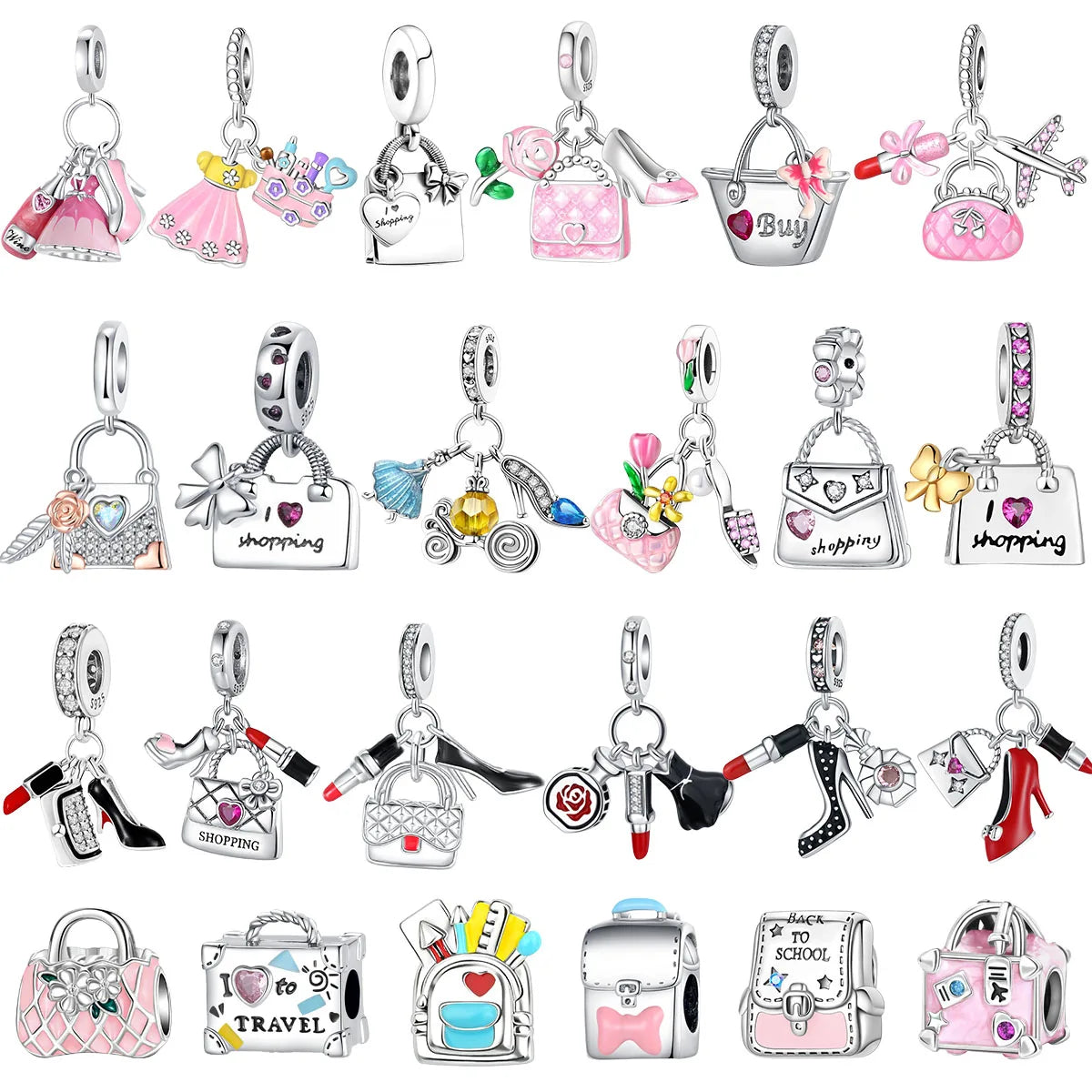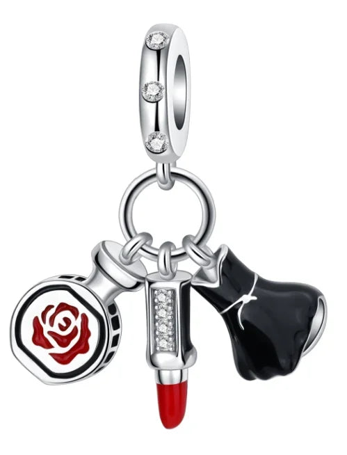 Romantic 925 Sterling Silver Lipstick Shoes Bag Charms by Bazaar Hub are exquisite accessories designed to add a chic touch to your bracelet, necklace, or backpack. Crafted from genuine 925 sterling silver and adorned with shimmering zircon stones, these fine jewelry charms weigh just 3-5g for comfortable wear.