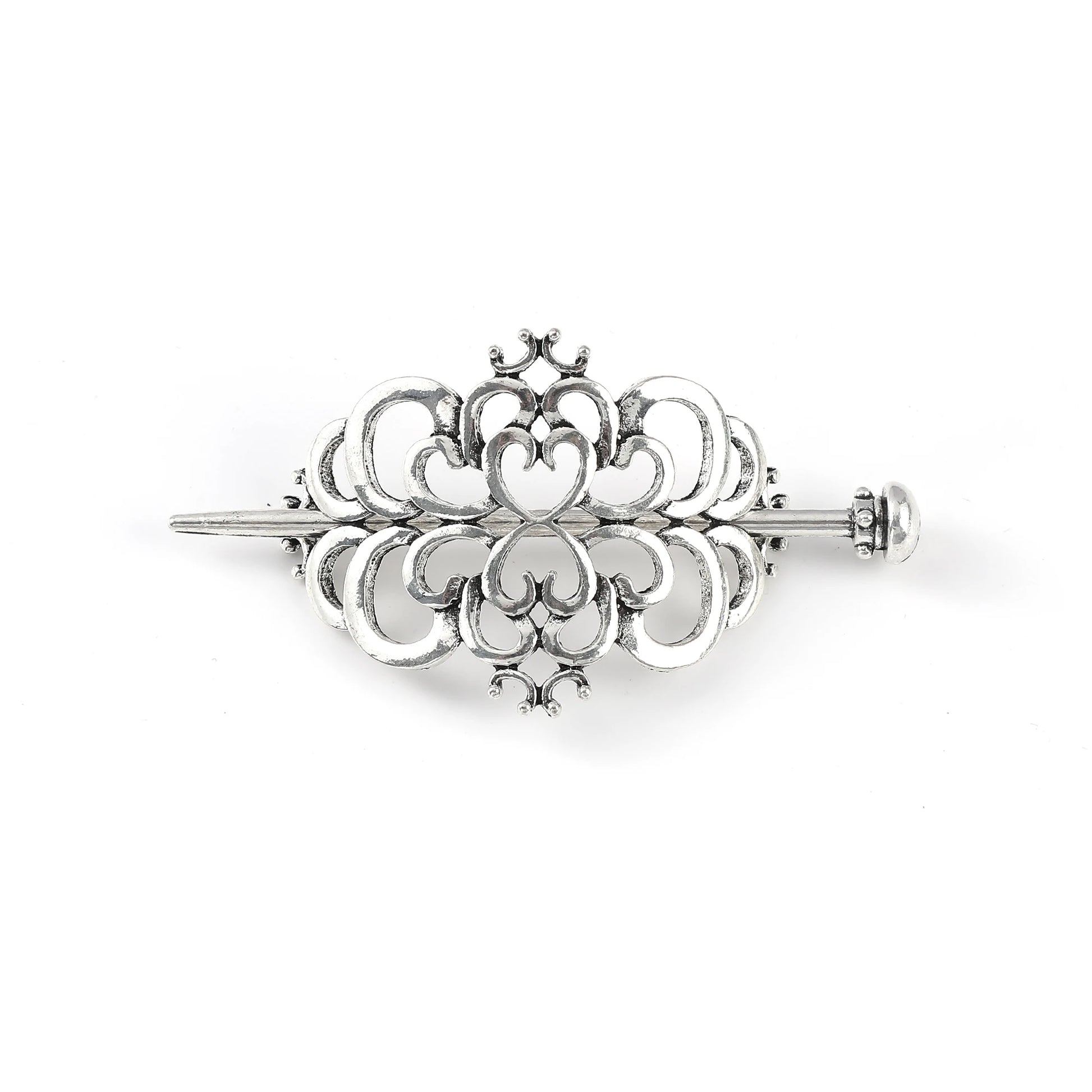 Introducing the Scandinavian Viking Celtic Knot Love Hairpin, a fusion of elegance and heritage designed by Bazaar Hub. Crafted from durable metal, this classic heart-shaped hair accessory is perfect for both special occasions and everyday wear.