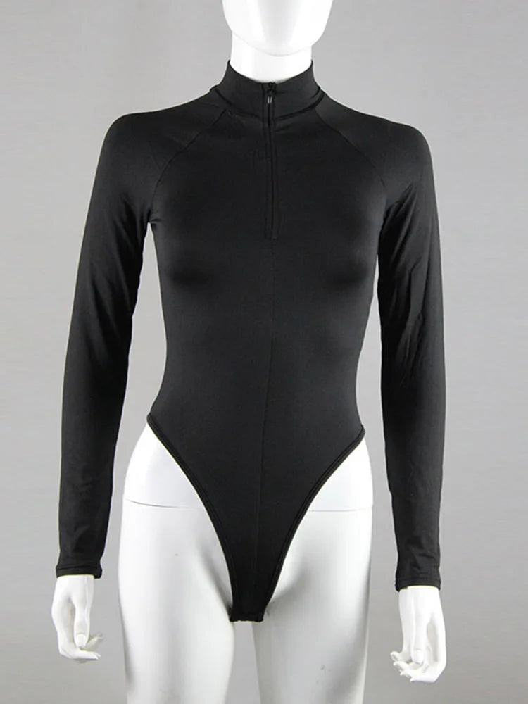 Velvet Romper Bodysuit Women Long Sleeve Zipper Jumpsuit