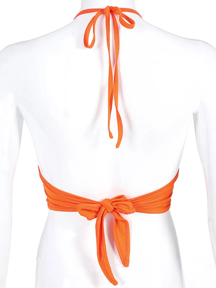 Slim Fit V Neck Summer Bustier Crop Top Halter Backless