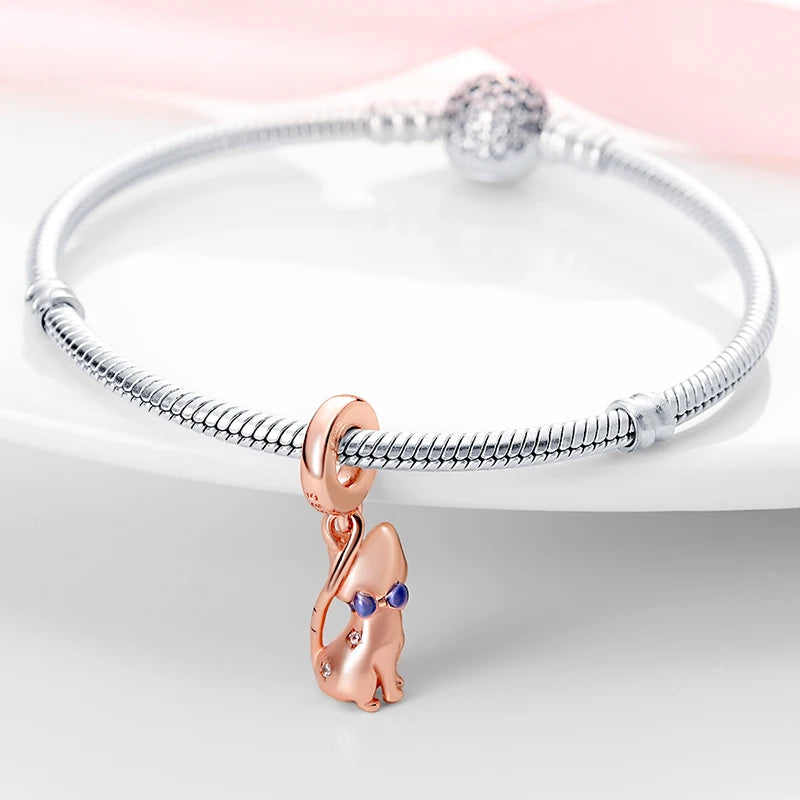 New Original Charms Beads Pendant 925 Silver Sterling Elegant Gold Fashion Cat Charm by Bazaar Hub — a 3g sterling silver charm plated in warm gold, set with sparkling zircon for a classic, feminine finish.
