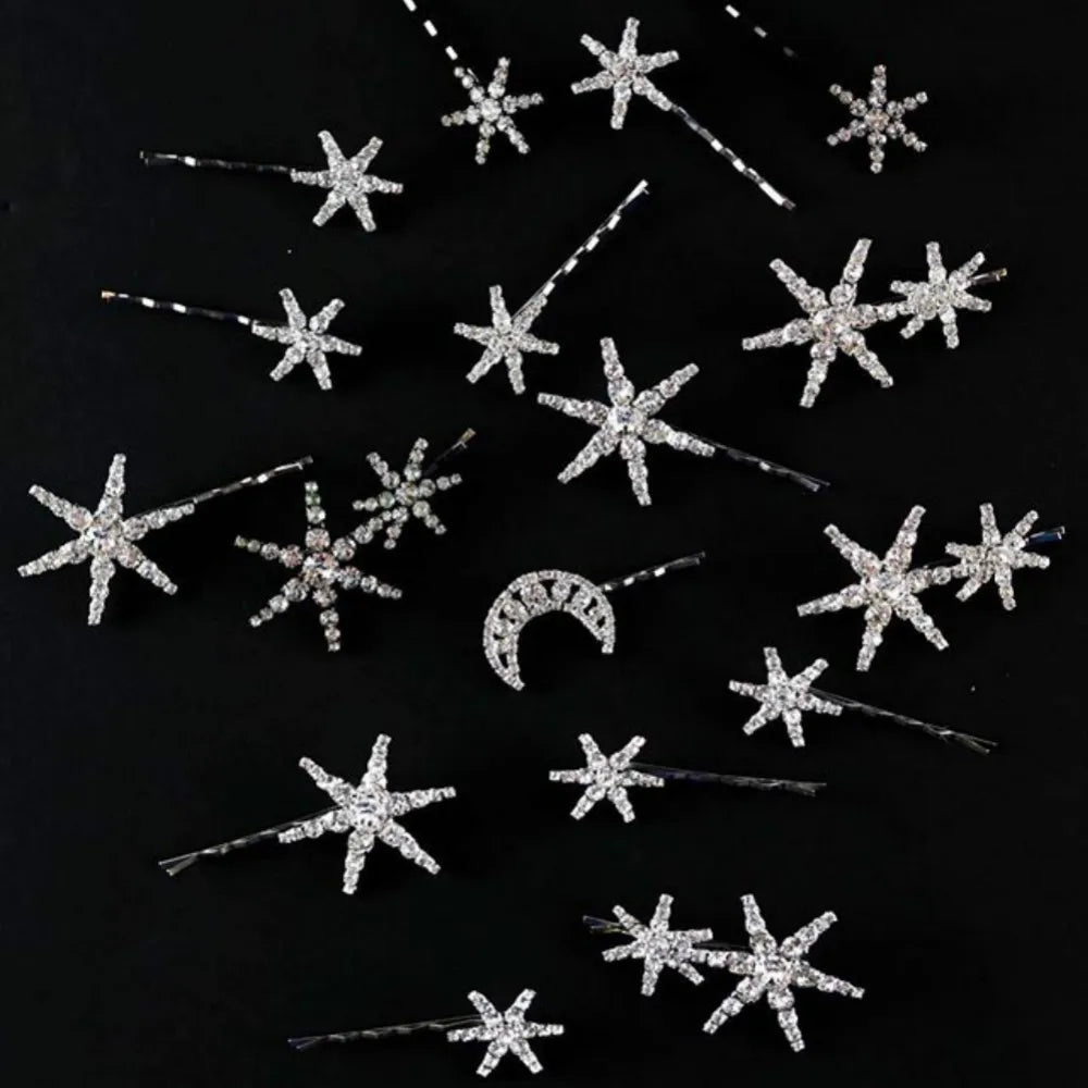 Set Includes: | 1 Star Hairpin, 2 Moon Hairpins |