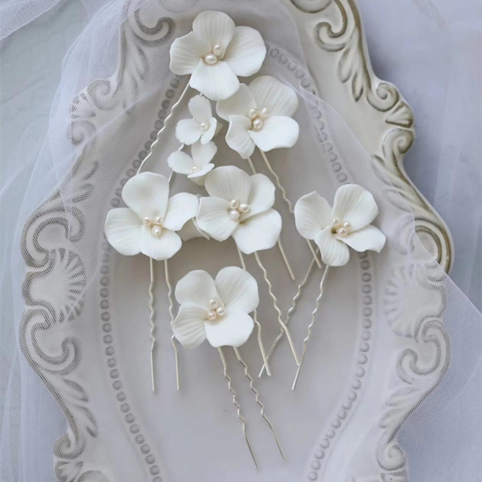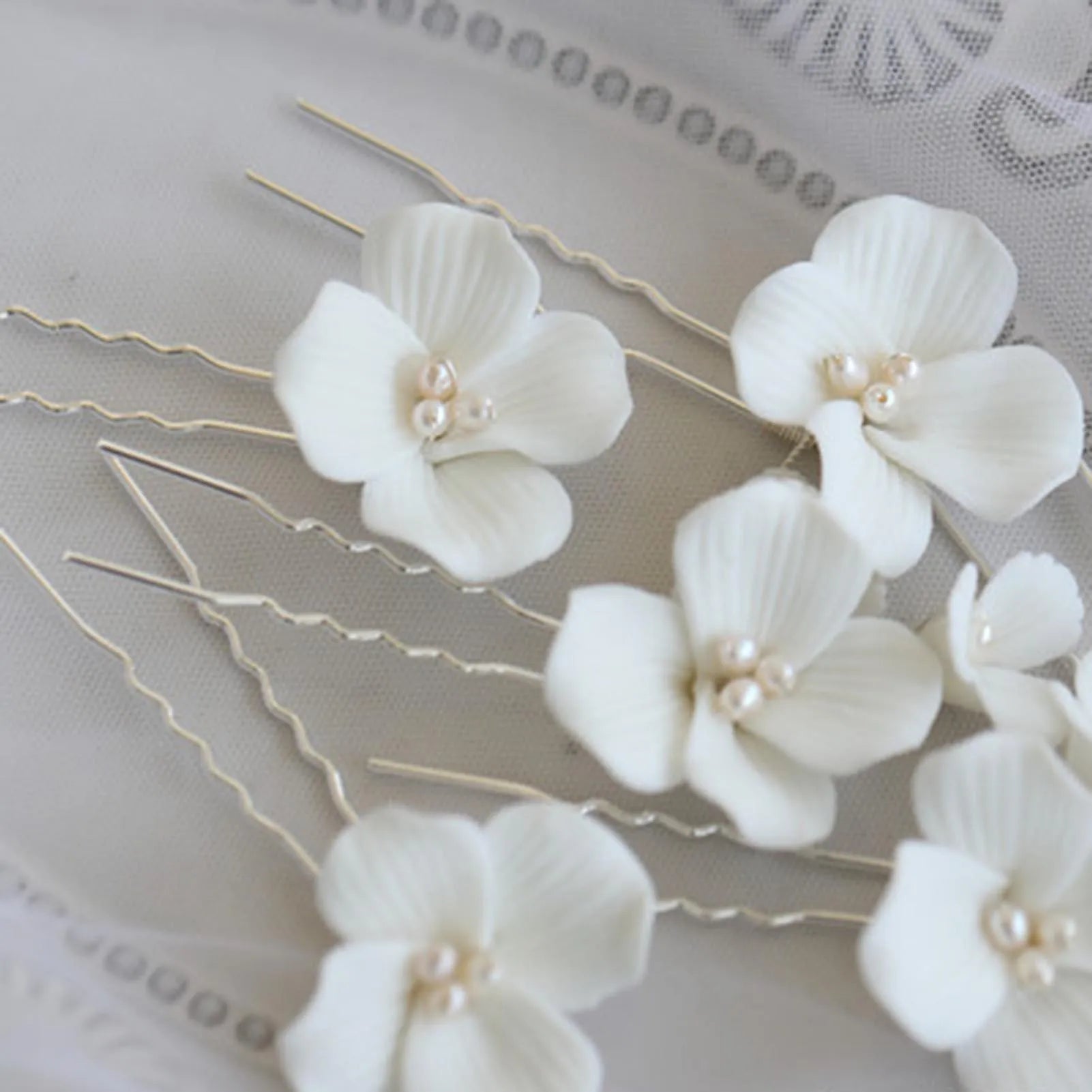 White Floral Ceramic Hairpins for Elegant Bridal Hairstyles