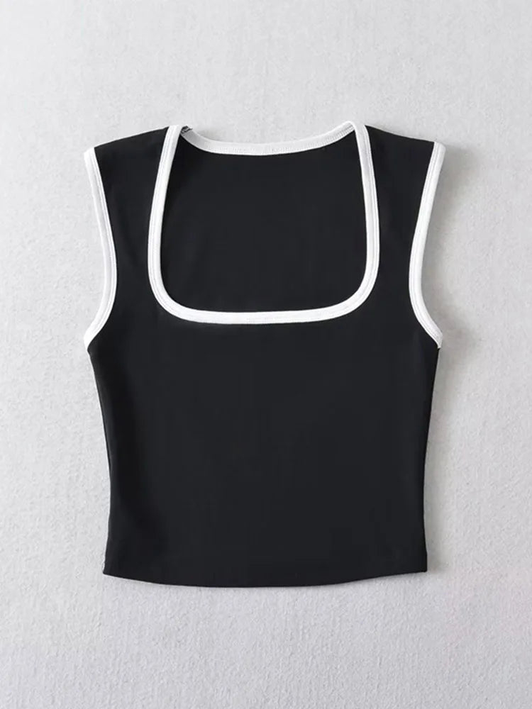 Woman Fashion Slim Solid Contrust Camis Casual Sleeveless Tanks Square Collar Crop Tops Clothing Streetwear Mujer 2024 Y2k