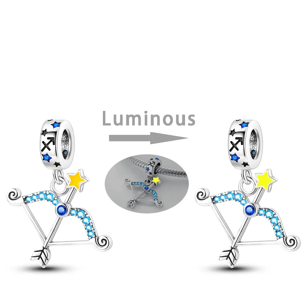 Zodiac Glow In Dark 925 Sterling Silver Charm Beads
