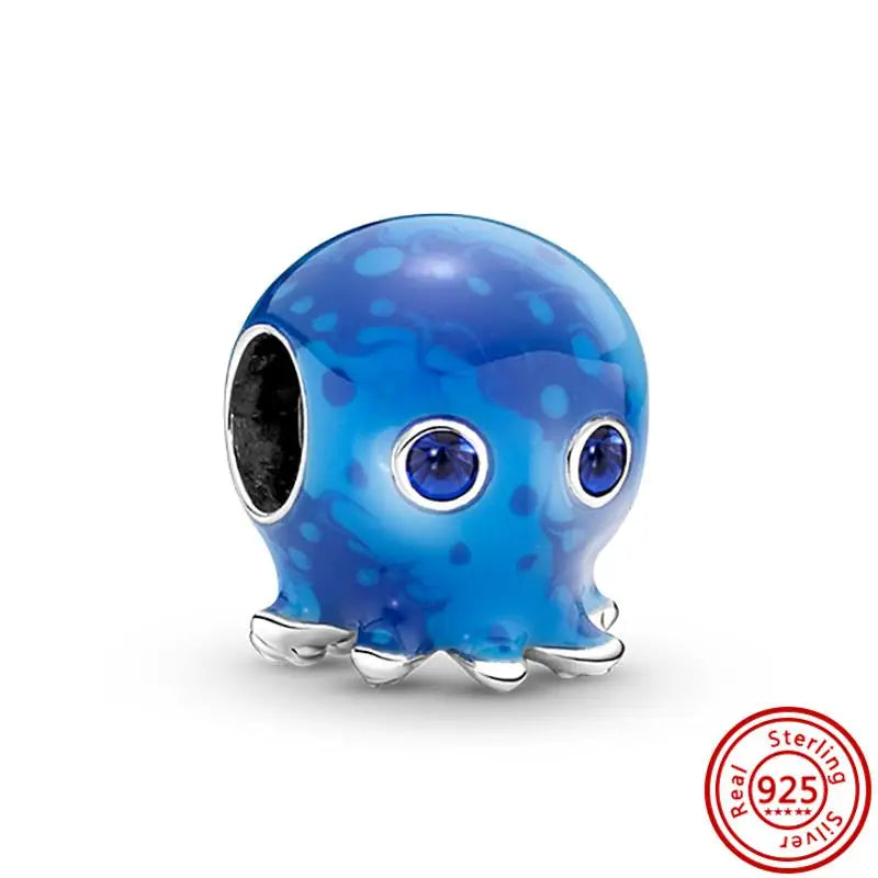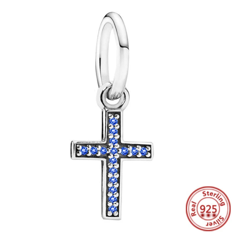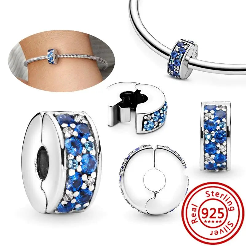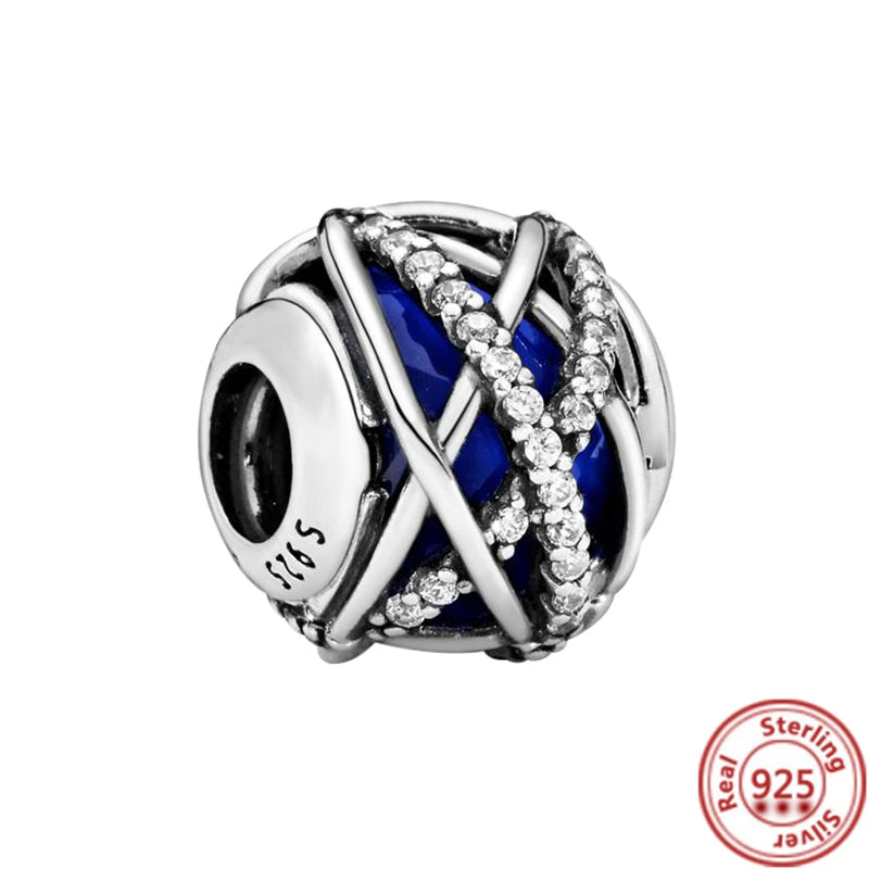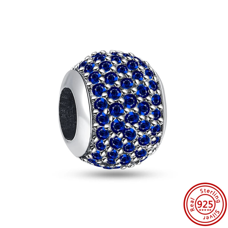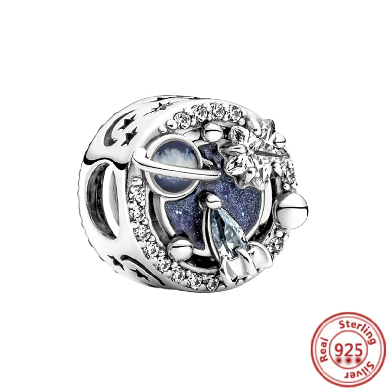 925 Sterling Silver Blue Zircon Feather Crown Stars Moon Charm Beads for Bracelet