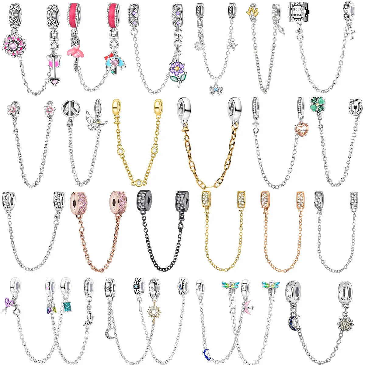 925 Sterling Silver Clover Daisy Star Moon Pavé Safety Chain Bow Necklace and Bracelet Set Luxury Fine Jewelry for Women