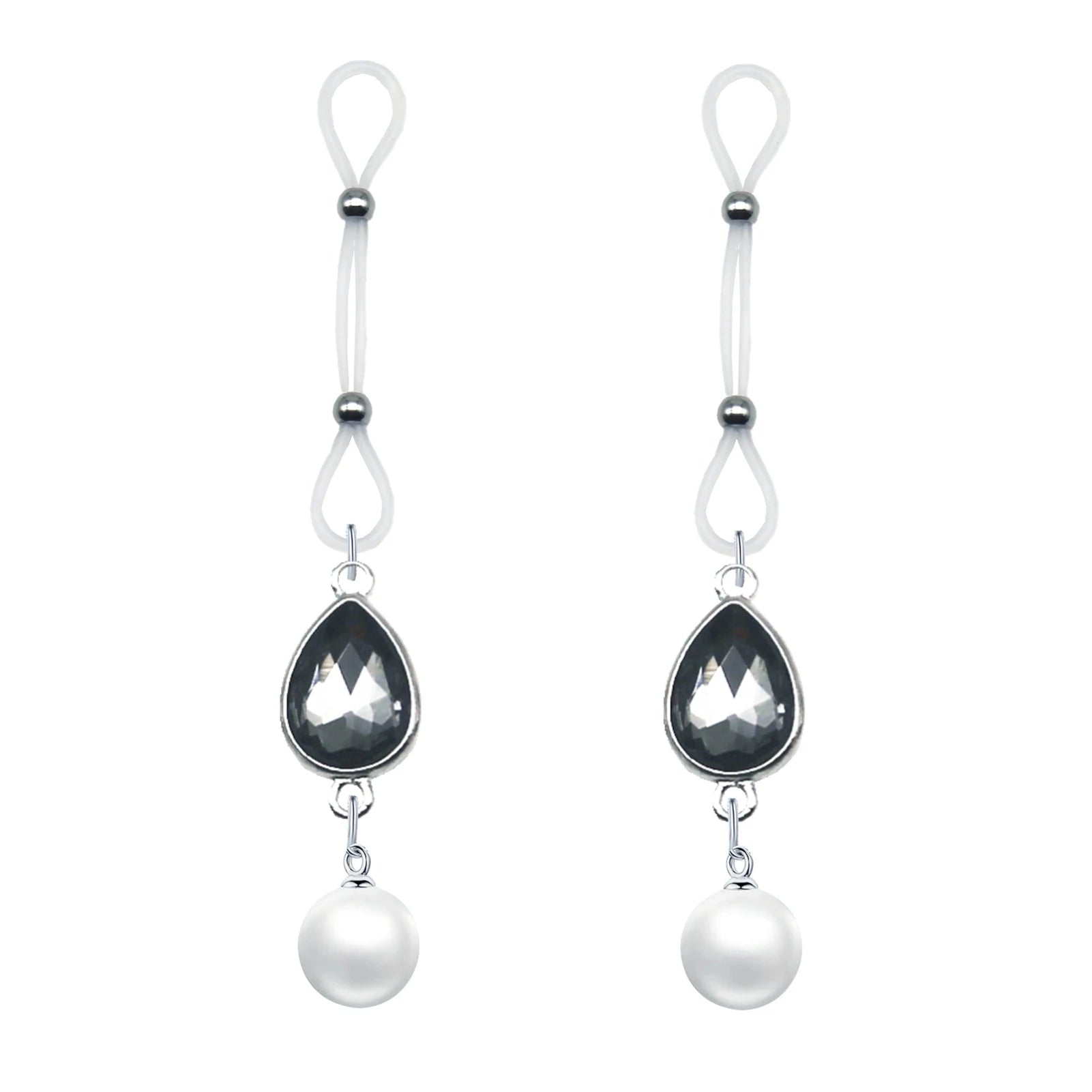 Discover the allure of the Adjustable Faux Nipple Piercing Jewelry With Pearls - Non Pierced Nipple Noose Rings by the renowned Bazaar Hub. This exquisite body jewelry provides a bold fashion statement without the need for actual piercings. Crafted from durable stainless steel, the elegant water drop design is enhanced with lustrous pearls, offering a touch of sophistication and charm.
