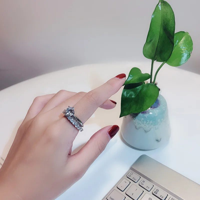 Discover timeless elegance with the Real 100 Percent 925 Sterling Silver Diamond Engagement Wedding Band Ring Set for Women from Bazaar Hub. Crafted from high-quality 925 sterling silver, this exquisite set features: