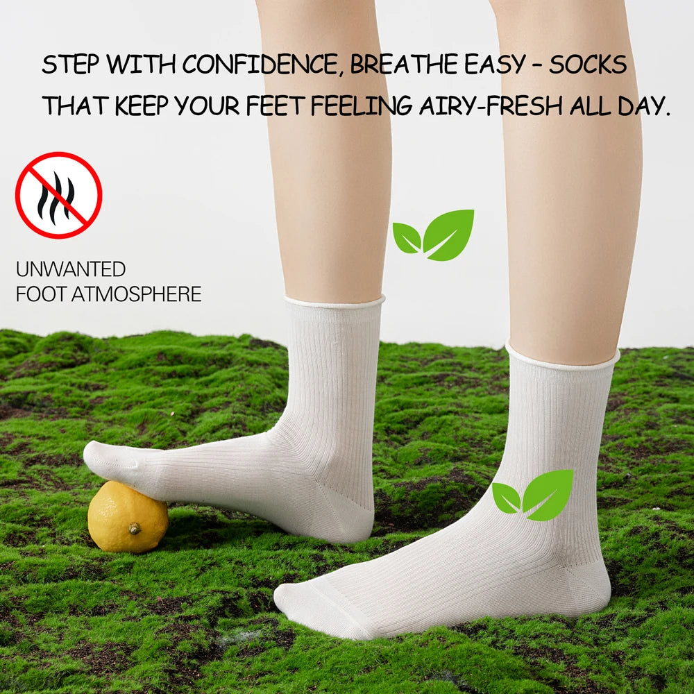 6 Pairs Solid Color Women's Modal Fiber Socks by Bazaar Hub — stretchy mid-calf socks with scrunch design, breathable mesh vents and non-slip grip for daily comfort.