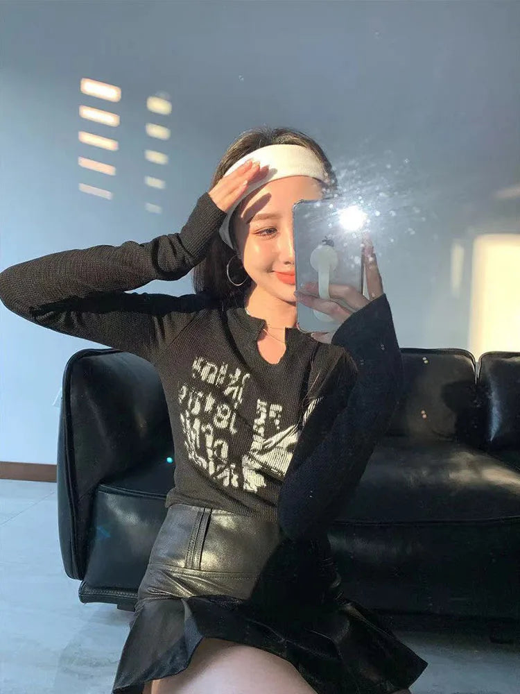 Long sleeve Crop Top Grunge Clothes Vintage Letter T-shirt Aesthetic Clothes Korean Style Chic Slim Autumn y2k Top Streetwear by Dozw, available through Bazaar Hub, delivering retro edge for everyday streetwear.