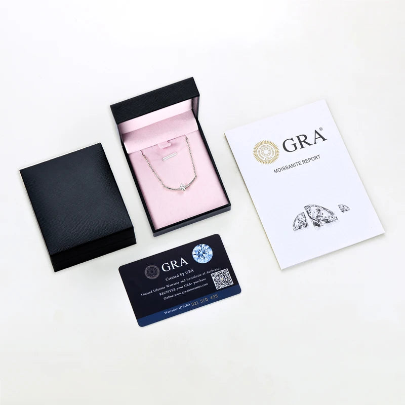- Features: Moissanite pendant with third-party appraisal certificate.
