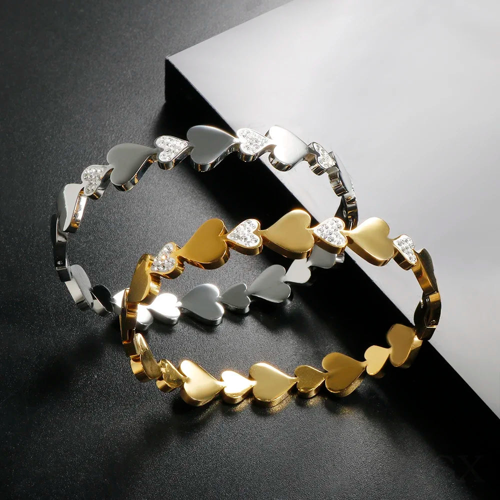 Jovolove Elegant Stainless Steel Waterproof Bangle for Women - Fashionable Gemstone Design