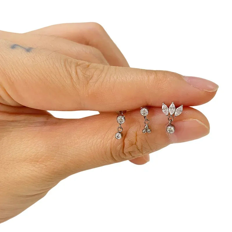 ASTM F136 Titanium Ear Piercing Pendant Chain Dangle Ear Studs with CZ Top Labret Lip Stud and Cartilage Earring Body Jewelry