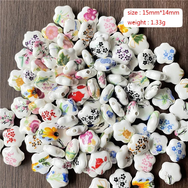 Ceramic Star-Shaped Flower Spacer Beads for DIY Jewelry - 15pcs 14x15mm
