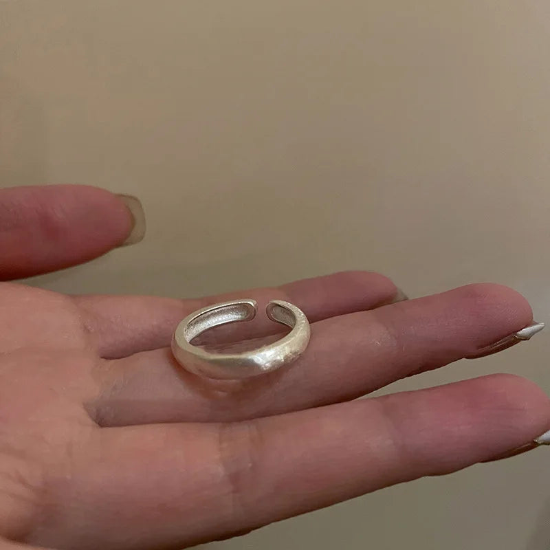 Hip Hop Blue Zircon Curved Matte Metal Ring for Women Retro Fashion Jewelry