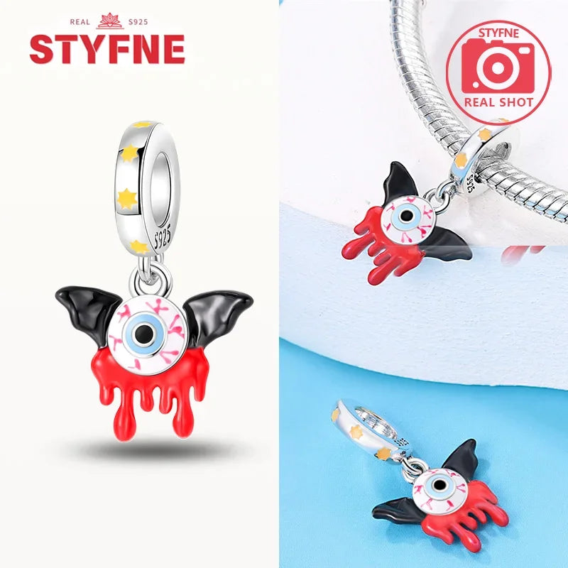 S925 Silver Luminous Zombie Skeleton Charm Bead Dangle