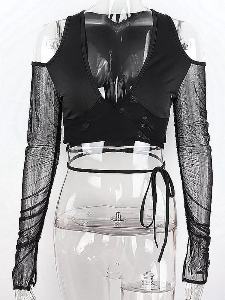 Sexy Black Crop Tops Streetwear Women Fashion 2024 Lace Up Bandage V Neck Cut Out Long Sleeve T Shirts delivers bold, head-turning style for nights out and street-ready looks.