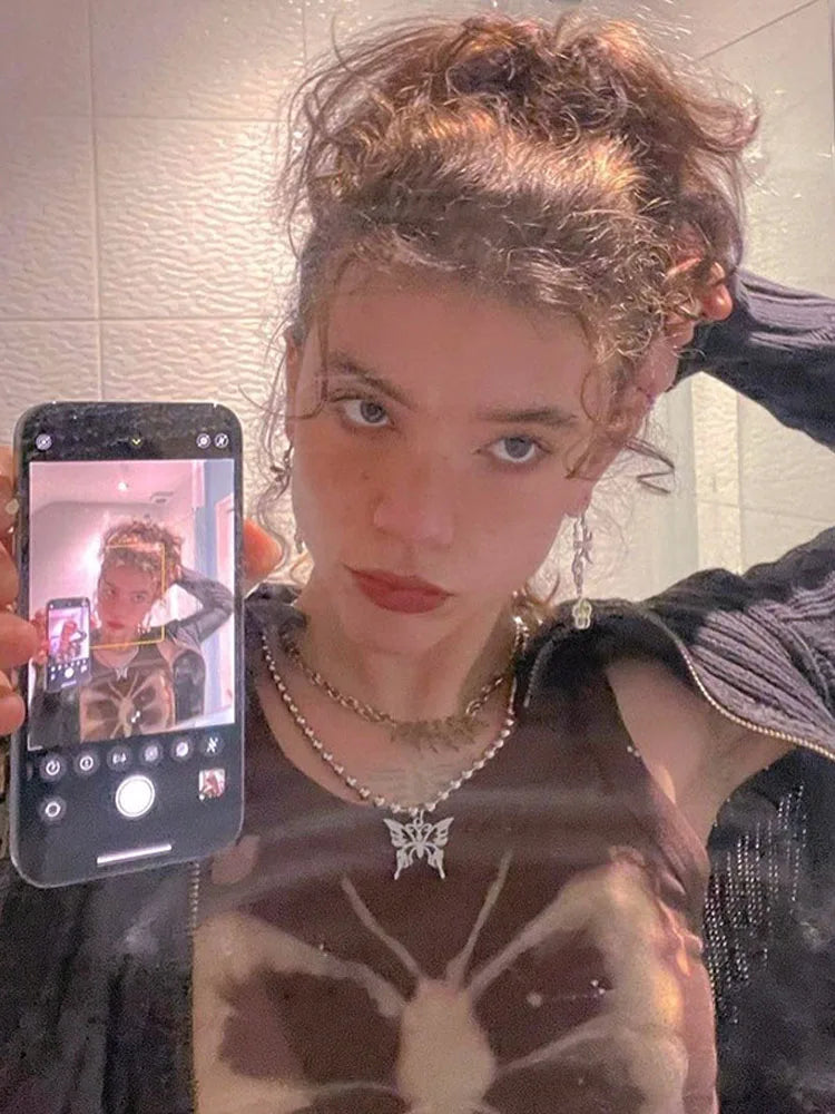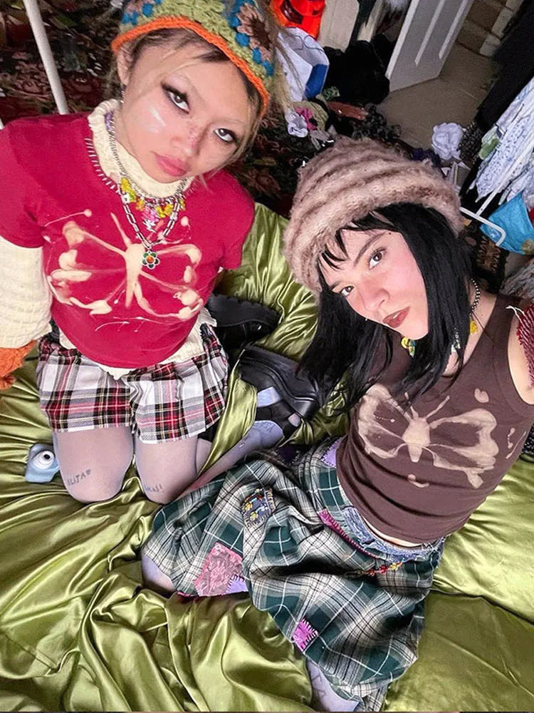 - Butterfly graphic across the front adds a bold, on-trend Y2K aesthetic.